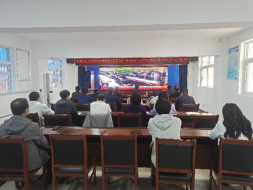 【學(xué)習(xí)二十大】駐馬店市驛城區(qū)委政法委、區(qū)法學(xué)會(huì)組織全體干部職工集中收聽收看了黨的二十大實(shí)況直播