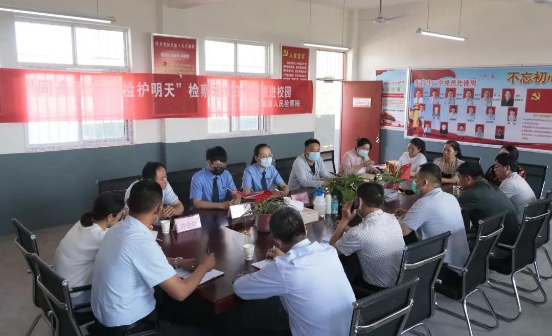 最后,我院黨員干警與縣教育局的相關(guān)同志、該校班子成員、各班班主任在該校黨建室召開了座談會。座談會圍繞如何預(yù)防校園暴力、維護(hù)未成年人的合法權(quán)益進(jìn)行了交流,未檢檢察官們對老師們提出的問題進(jìn)行了法律知識解答。