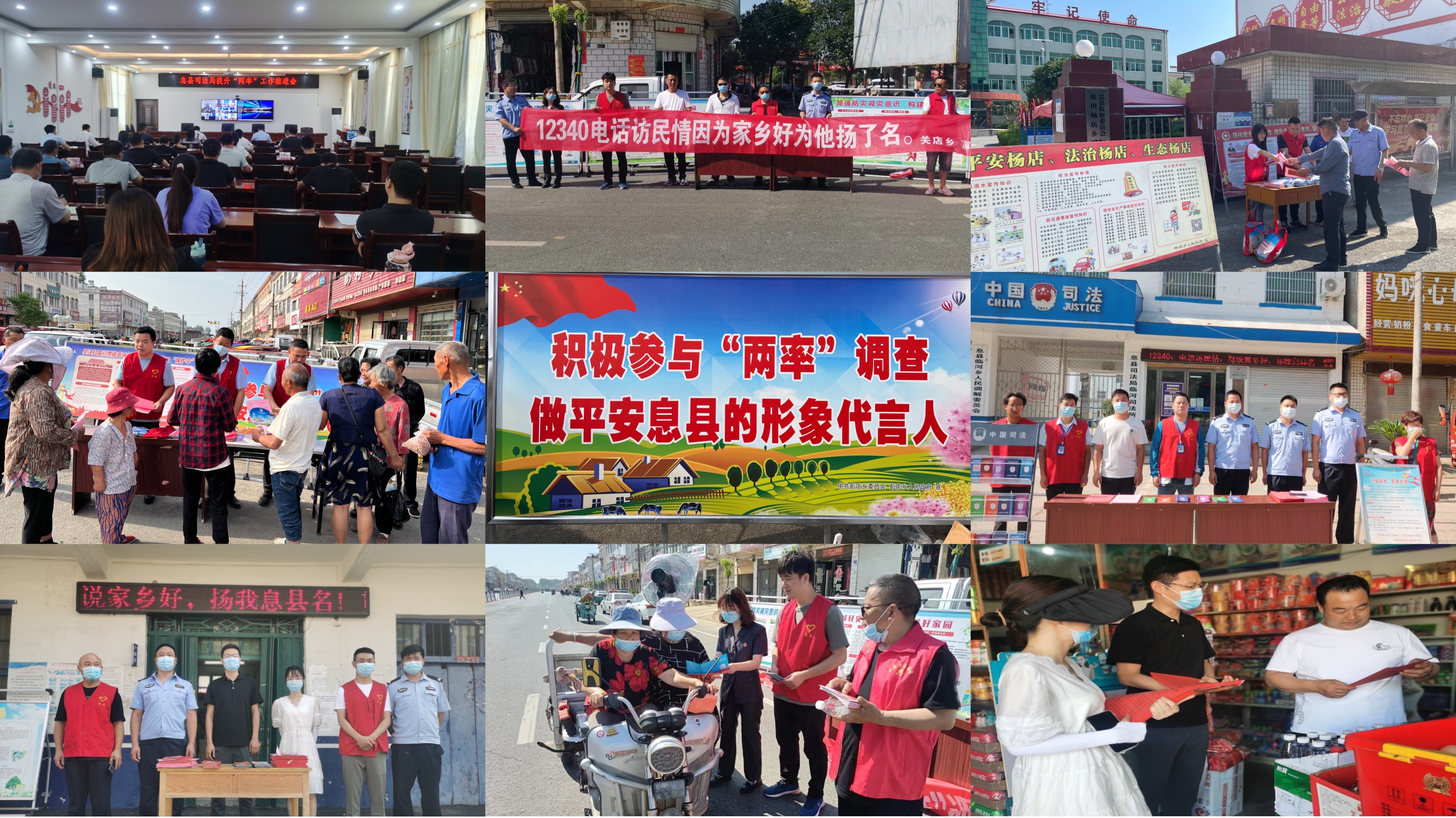 四、深入基層開展走訪。全縣23個鄉(xiāng)鎮(zhèn)司法所在本轄區(qū)內(nèi)開展大走訪活動。深入群眾走訪重點人員、安置幫教人員、社區(qū)矯正人員。發(fā)放了平安建設宣傳材料3000余份,《平安息縣 您我共建--致廣大群眾一封信》10000余張。給居民講解防盜、防火、防電信詐騙等各類與居民日常生活密切相關的安全知識,發(fā)放宣傳小禮品,創(chuàng)造良好的宣傳氛圍,并詳細地講解了公眾安全感和對政法機關執(zhí)法滿意度的相關知識,告知群眾如有“12340”來電要禮貌耐心接聽,客觀公正評價。同時把“兩率”提升工作融入到日常的業(yè)務中。通過開展“送法進校園”活動,小手拉大手有效提高了學生和家長對于“兩率”提升工作的知曉度和參與度。通過開展村居法律顧問集中服務日活動,為群眾開展法律咨詢、法律宣傳、法律援助等服務,極大提升居民群眾的滿意度。