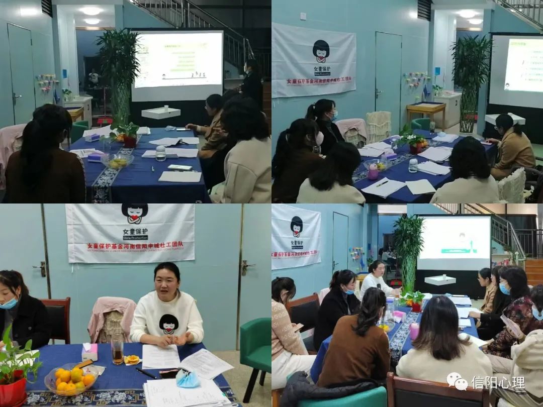 11月19日“女童保護”信陽申城社工團隊在信陽市法學(xué)會社會心理服務(wù)研究會開展磨課活動,司凌麗會長強調(diào)了未成年人保護的重要性,并就“女童保護”課程進行講解答疑。