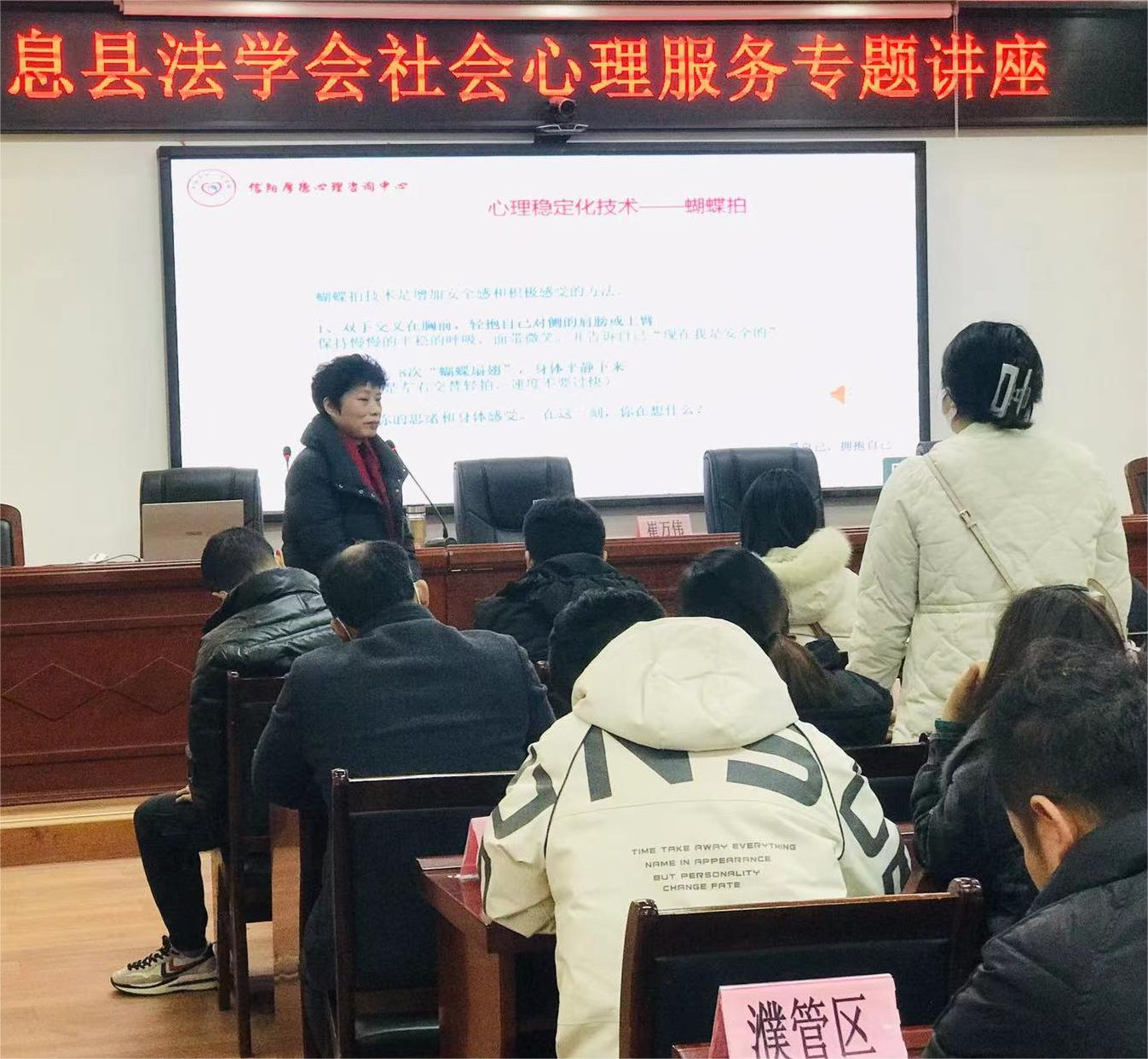 2月8日,息縣縣委政法委、息縣法學(xué)會召開全縣社會心理服務(wù)專題講座,活動邀請了信陽市厚德心理咨詢中心主任、國家二級心理咨詢師葉霞前來授課,全縣各鄉(xiāng)鎮(zhèn)辦事處負(fù)責(zé)心理服務(wù)的同志54人聆聽了專題講座。