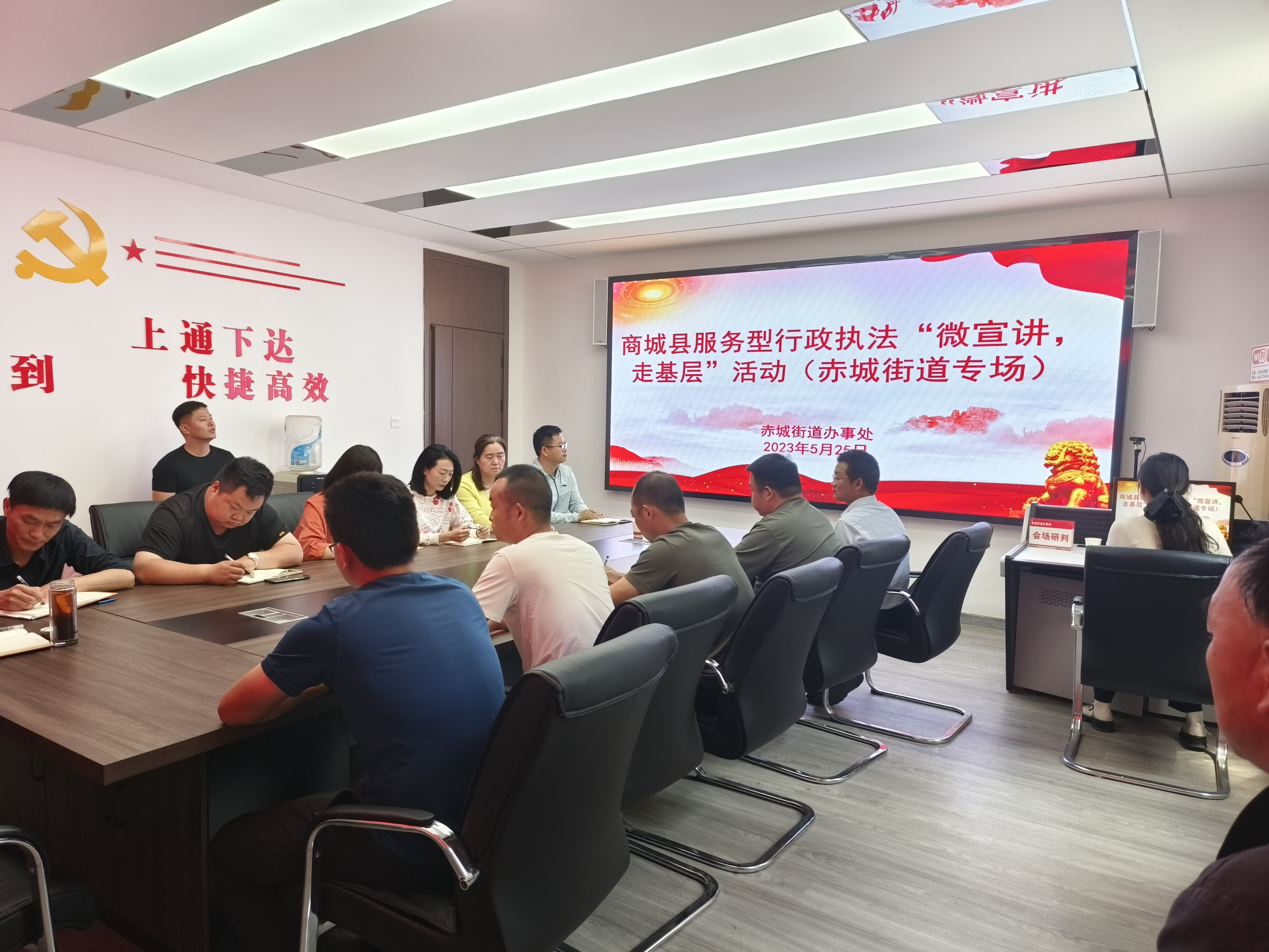 為深入貫徹落實(shí)習(xí)近平法治思想,進(jìn)一步深化我縣服務(wù)型行政執(zhí)法建設(shè),切實(shí)提升鄉(xiāng)鎮(zhèn)綜合行政執(zhí)法隊(duì)伍法治素養(yǎng)和執(zhí)法水平,按照《商城縣服務(wù)型行政執(zhí)法“微宣講、走基層”活動(dòng)實(shí)施方案》要求,5月24日至25日,縣法政辦組織宣講員先后走進(jìn)鲇魚山街道辦事處、赤城街道辦事處、伏山鄉(xiāng)開展服務(wù)型行政執(zhí)法“微宣講、走基層”活動(dòng)。商城縣司法局工作人員楊孝成進(jìn)行宣講,三個(gè)鄉(xiāng)鎮(zhèn)的綜合行政執(zhí)法大隊(duì)、自然資源所、市場監(jiān)管所全體工作人員參加了活動(dòng)。