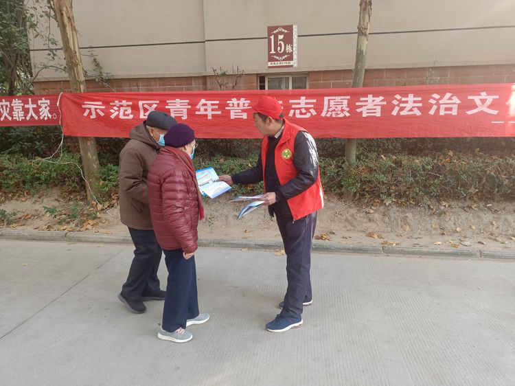為提高群眾自身的防范意識,保證自身生命財產(chǎn)安全,示范區(qū)法學會金耀辦事處工作站在河大21號院為居民做普法宣傳。