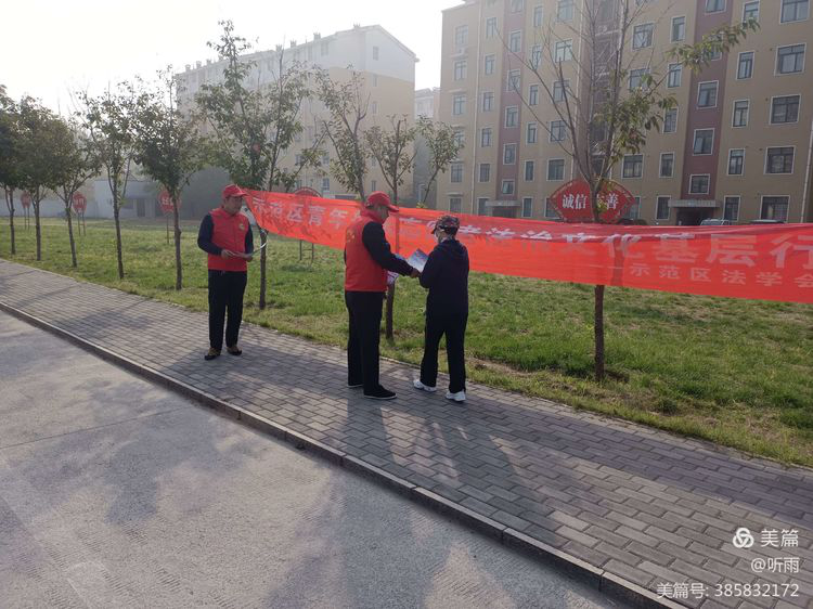 為了提高金耀社區(qū)轄區(qū)居民的法律意識和知識,提升大家知法、懂法、用法的能力,增強社區(qū)群眾依法維權的法律意識,工作人員在轄區(qū)內開展了“示范區(qū)青年普法志愿者法治文化基層行活動”
