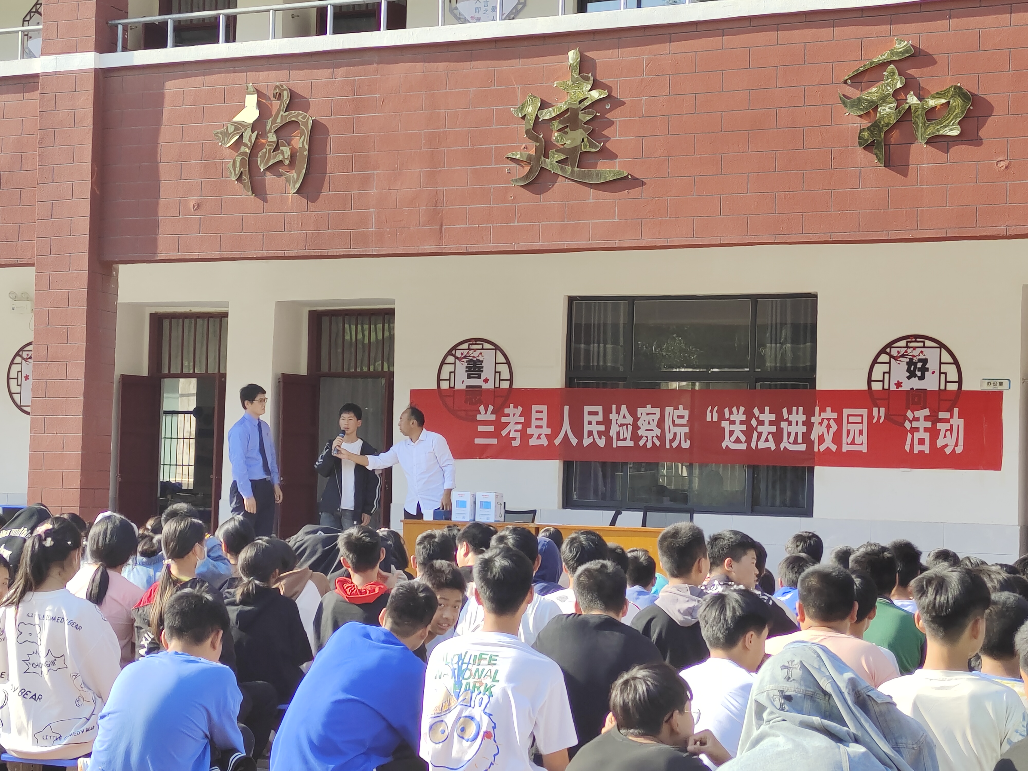 2022年9月29日下午,蘭考縣人民檢察院第三檢察部副主任、壩頭鎮(zhèn)第一初級中學法治副校長張建和檢察干警孔寒寒深入壩頭鎮(zhèn)第一初級中學開展“送法進校園”法治宣講活動,通過活動增強孩子們的法律意識。