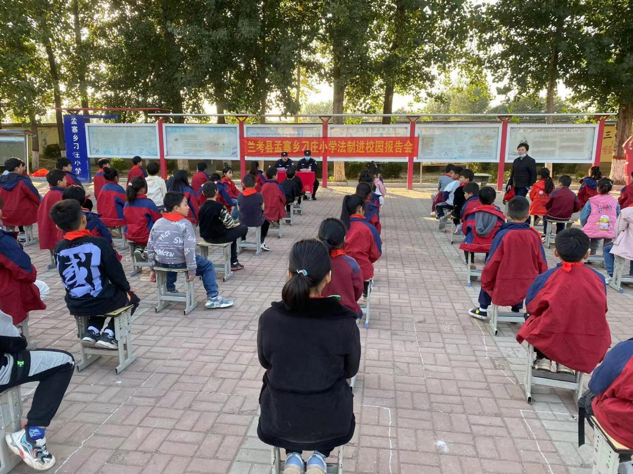 為提高全校師生的法治意識,進一步增強師生們的法治觀念,提高師生自覺運用法律來規(guī)范自身行為的能力,營造一個和諧平安的校園學(xué)習(xí)生活環(huán)境,10月17日上午,蘭考縣公安局孟寨派出所民警李春明前往孟寨鄉(xiāng)刁莊小學(xué),為全校師生帶來了一堂非同尋常的法治教育課。講座分法治教育和法律教育兩個專題進行。