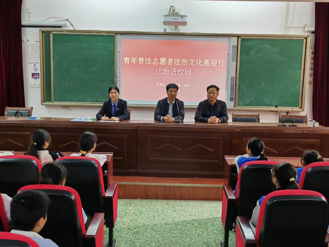 為了進(jìn)一步增強(qiáng)同學(xué)們的守法意識,自覺遵紀(jì)守法,學(xué)會用法律武器維護(hù)自己的正當(dāng)權(quán)利,做知法、守法的合格社會小公民,2023年10月9日下午,蘭考縣法學(xué)會組織青年普法志愿者到蘭陽第二小學(xué)開展法治宣講教育活動。