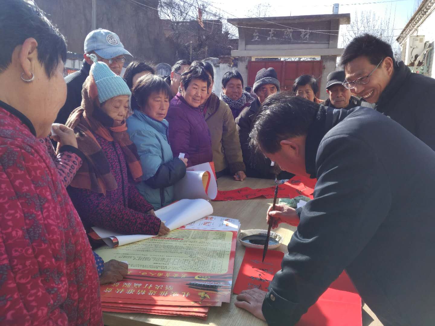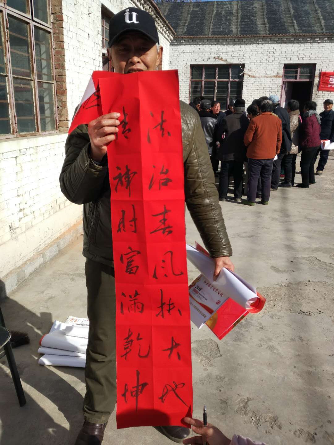從上午9點(diǎn)半到下午2點(diǎn),活動(dòng)持續(xù)了4個(gè)多小時(shí),群眾依舊熱情高漲,不舍得離開。此次活動(dòng)共贈(zèng)送出了100多幅春聯(lián),發(fā)放了臺(tái)歷、掛歷50多份,洗衣膏、牙膏等禮品100多件,受到了村民的一致好評(píng)。