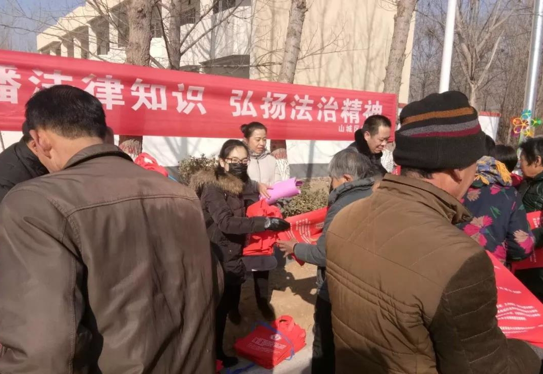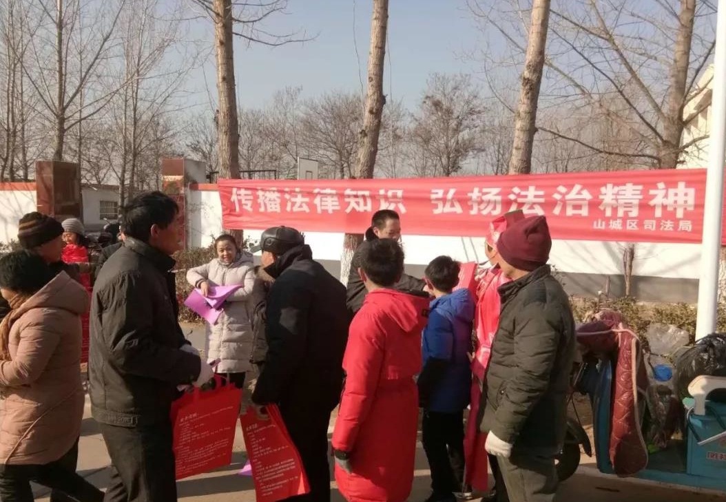 2月6日,山城區(qū)司法局抽調(diào)律師、公證、法律援助工作者、基層法律服務(wù)所一行十人組成法治宣傳小分隊(duì),在局長(zhǎng)杜曉琳的帶領(lǐng)下,到宋溝村年貨大集開展送法下鄉(xiāng)活動(dòng)。