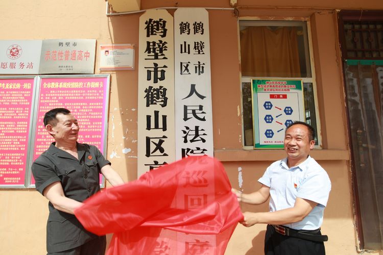 6月2日上午,鶴壁市法學會團體會員鶴山區(qū)人民法院鶴山高中巡回法庭舉行揭牌儀式,鶴山區(qū)法院黨組成員、副院長閆洪福,鶴山高中黨支部書記、校長宋清民及50余名師生代表參加揭牌儀式。