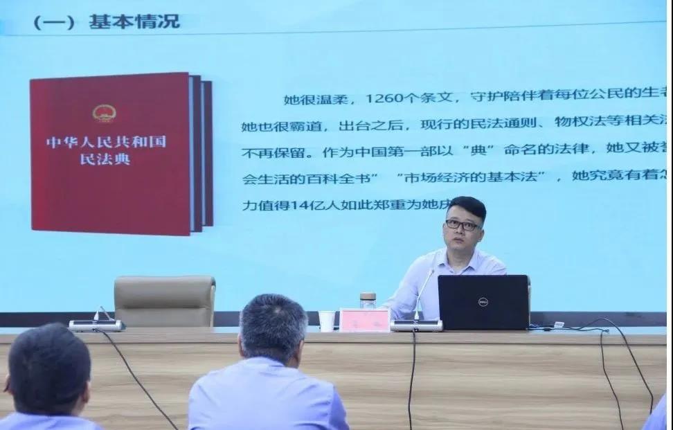 閆煒主任從民法典制定的意義、民法典中規(guī)定的民事原則、民法典修改后的亮點(diǎn)以及對(duì)于生活的影響四個(gè)方面用幽默風(fēng)趣的語(yǔ)言、深入淺出的事例向在座的各位檢察院同志介紹民法典。并希望在民法典頒布后生效前的這段時(shí)間里,各位同志在生活和工作中,學(xué)好用好民法典。