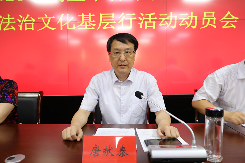 6月18日上午,我市召開(kāi)2020年青年普法志愿者法治文化基層行活動(dòng)動(dòng)員會(huì),市委常委、政法委書(shū)記、市法學(xué)會(huì)會(huì)長(zhǎng)唐獻(xiàn)泰出席會(huì)議并講話(huà)。