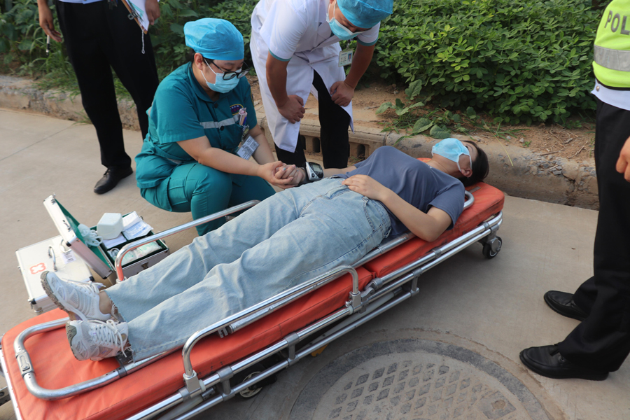 按照交管巡防大隊提前制定的多部門應(yīng)急救援演練預(yù)案,當(dāng)日下午18時,開發(fā)區(qū)綜合執(zhí)法局、消防大隊、開發(fā)區(qū)公安分局治安大隊和120急救中心等應(yīng)急演練工作人員20余人,在鶴壁市經(jīng)濟(jì)技術(shù)開發(fā)區(qū)東楊工業(yè)區(qū)富春江路東段集結(jié)完畢。18時20分,演練活動正式開始。模擬的一起道路交通事故現(xiàn)場準(zhǔn)備完畢:一輛轉(zhuǎn)彎行駛的豫F牌照小轎車與一輛自西向東行駛的電動自行車發(fā)生碰撞,電動車駕駛?cè)吮蛔仓谅愤吘G化帶受傷嚴(yán)重,轎車駕駛員因車輛撞擊路邊石昏迷不醒,轎車因車門凹陷損毀嚴(yán)重,駕駛?cè)吮焕я{駛室內(nèi),無法自行出來。接到報警后,119消防車、120救護(hù)車、交警治安出警車、城市管理車輛呼嘯著疾駛而來,緊急救援次第展開:交警人員迅速封閉現(xiàn)場道路,公安人員迅速疏導(dǎo)圍觀人員,消防人員用專用工具撬開副駕駛位置的車門,120醫(yī)護(hù)人員隨即鉆進(jìn)駕駛室,與消防人員一起將受傷人員救出,大家相互配合及時妥善地將傷者抬上救護(hù)車,迅速趕往醫(yī)院救治。與此同時,交警、治安人員對事故現(xiàn)場進(jìn)行勘查,城管人員檢查城市水電線路損毀情況……各項現(xiàn)場勘查、道路損毀設(shè)施維護(hù)等工作有條不紊地開展,經(jīng)過近30分鐘的緊張有序演練,應(yīng)急救援活動圓滿結(jié)束!