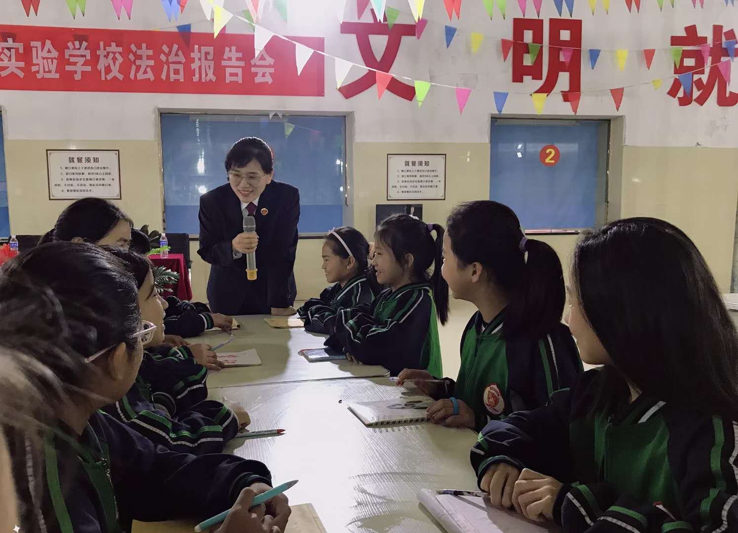 法學(xué)會(huì)會(huì)員、浚縣檢察院第五檢察部袁鳳娟等四人通過生動(dòng)的講解讓同學(xué)們明白違反法律需要承擔(dān)的后果,教育學(xué)生要從小養(yǎng)成遵紀(jì)守法的好習(xí)慣。同時(shí)要學(xué)會(huì)保護(hù)自己,遇到人身傷害和財(cái)產(chǎn)損害時(shí),要用合法的方法保護(hù)自己的合法權(quán)益。為了調(diào)動(dòng)大家的積極性,采取講解實(shí)際案例、摸擬情景再現(xiàn)和小游戲結(jié)合的方式,讓同學(xué)們切身體體會(huì)到?jīng)_動(dòng)魯莽的后果,教育大家在和別人相處的過程中,要克制自己,相互體諒。由于袁鳳娟講課生動(dòng)有趣,在同學(xué)們的一再要求下,這堂法治課持續(xù)了80分鐘,最后在同學(xué)們的戀戀不舍中結(jié)束。
