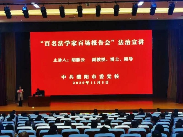 11月5日,河南省“百名法學(xué)家百場(chǎng)報(bào)告會(huì)”濮陽(yáng)市委黨校專(zhuān)場(chǎng)開(kāi)講。華北水利水電大學(xué)副教授胡雁云作題為“加強(qiáng)黃河流域生態(tài)保護(hù)和高質(zhì)量發(fā)展法治保障”的專(zhuān)題輔導(dǎo)報(bào)告。市委黨校、社會(huì)主義學(xué)院2020年秋季第二期主體班全體學(xué)員及全體教職工270余人參加學(xué)習(xí)。