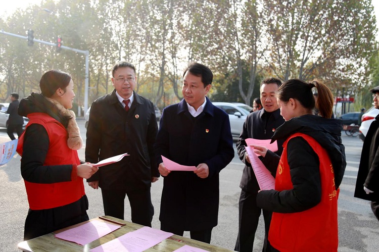 為深入學(xué)習(xí)貫徹黨的十九大和十九屆二中、三中、四中、五中全會精神,深入學(xué)習(xí)宣傳習(xí)近平法治思想,弘揚憲法精神、維護憲法權(quán)威,推動憲法全面實施。12月4日上午,由中共蘭考縣委、蘭考縣人民政府主辦,縣委宣傳部、縣委普法辦、縣法學(xué)會、縣司法和信訪局協(xié)辦的“蘭考縣12.4國家憲法日集中宣傳活動”啟動儀式在蘭考縣人民廣場舉行,縣政府副縣長、公安局局長王永召主持,縣政協(xié)、法院、檢察院等相關(guān)領(lǐng)導(dǎo)參加,縣委常委、政法委書記、縣法學(xué)會會長劉華文出席活動并講話。活動儀式結(jié)束后,縣委政法委副書記、法學(xué)會常務(wù)副會長孟凡征帶領(lǐng)相關(guān)工作人員現(xiàn)場開展憲法宣傳教育活動。