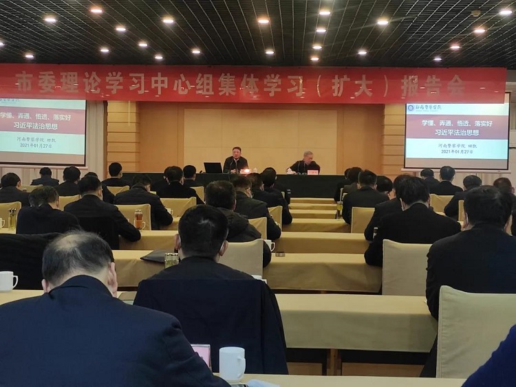 1月27日,河南省“百名法學(xué)家百場報(bào)告會”許昌市委理論學(xué)習(xí)中心組專場開講。河南警察學(xué)院黨委副書記、院長,河南省法學(xué)會副會長田凱教授受邀作專題輔導(dǎo)報(bào)告。市委書記胡五岳主持報(bào)告會。市領(lǐng)導(dǎo)史根治、馬正蘭、王堃、劉保新、方婷、丁同民、王志宏、王自合、柏啟傳、楚雷和其他市級領(lǐng)導(dǎo)出席報(bào)告會。