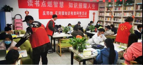 2月24日,伊川縣法學(xué)會(huì)聯(lián)合縣委政法委反邪教股工作人員到法治宣傳陣地河洛書苑,開展春節(jié)、元霄節(jié)“雙節(jié)”期間法治宣傳活動(dòng),通過懸掛橫幅、設(shè)置宣傳桌、發(fā)放宣傳冊(cè)、現(xiàn)場(chǎng)咨詢交流、有獎(jiǎng)問答等方式向過往群眾進(jìn)行反邪教宣傳和反間防諜宣傳。