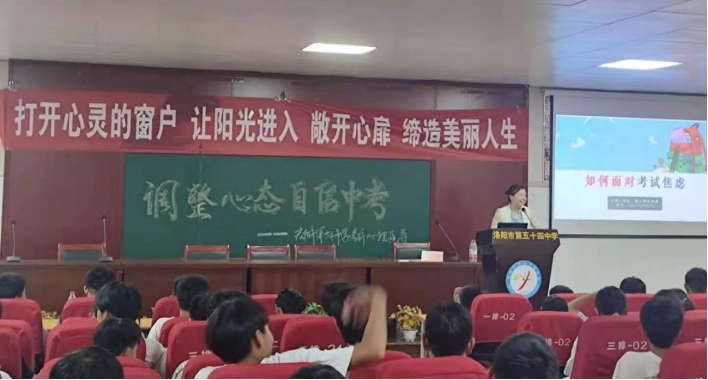為緩解九年級學(xué)生的中考壓力,調(diào)節(jié)不良心理情緒的干擾,輕松備戰(zhàn)2021年中考,6月22日,洛陽市洛龍區(qū)法學(xué)會邀請心理咨詢師蕭羽走進(jìn)洛陽市54中學(xué)為全體即將中考的同學(xué)們帶來一堂“調(diào)整心態(tài) 自信中考”的心理講座。