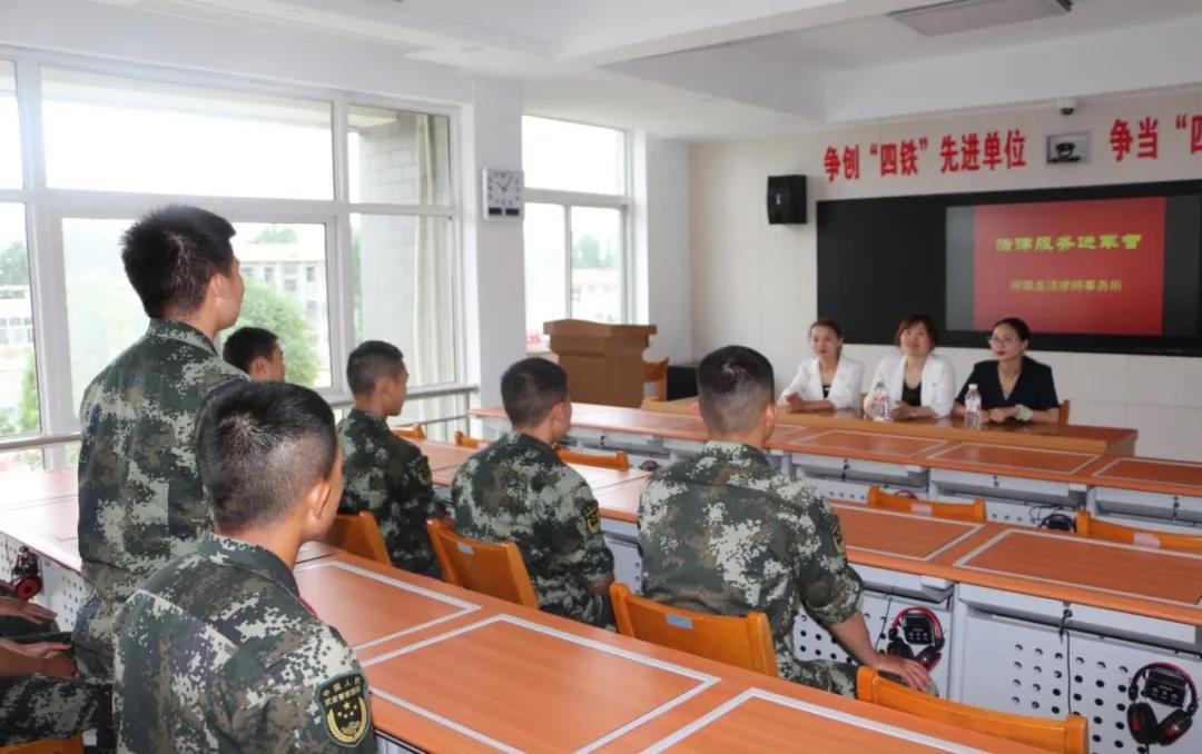 為了進一步滿足部隊官兵的法律需求,營造部隊法治宣傳教育良好氛圍,依法維護軍人軍屬的合法權(quán)益。近日,通許縣法學會、縣司法局組織青年普法志愿者到通許縣武警中隊開展“法律服務進軍營”活動,為最可愛的人送上法治服務。武警中隊組織全體新兵參加了此次活動。