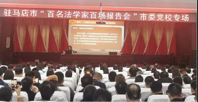 10月21日,駐馬店市委組織部、市法學會和市委黨校聯(lián)合舉辦了“百名法學家百場報告會”市委黨校專場報告會。鄭州大學法學院教授、博士生導師郭德香應邀作《習近平法治思想解讀》專題輔導報告。市委黨校的縣處級干部進修班、中青年干部培訓班、科級干部綜合素質提升培訓班等8個學員班,共368人參加了報告會。
