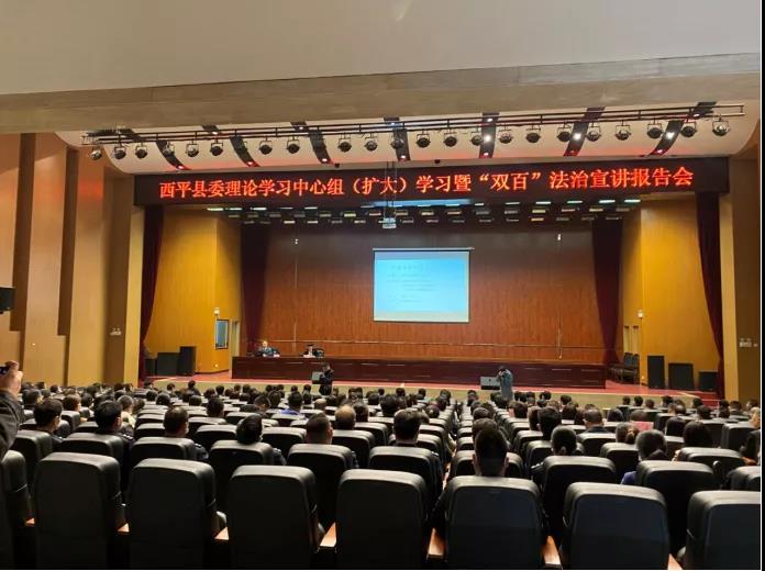 10月19日,西平縣在集聚區(qū)綜合會(huì)議室舉行縣委理論學(xué)習(xí)中心組習(xí)近平法治思想學(xué)習(xí)(擴(kuò)大)會(huì)議暨西平縣“雙百”法治宣講專場(chǎng)報(bào)告會(huì),邀請(qǐng)鄭州大學(xué)教授魏勝強(qiáng)老師作《習(xí)近平法治思想解讀》宣講報(bào)告。