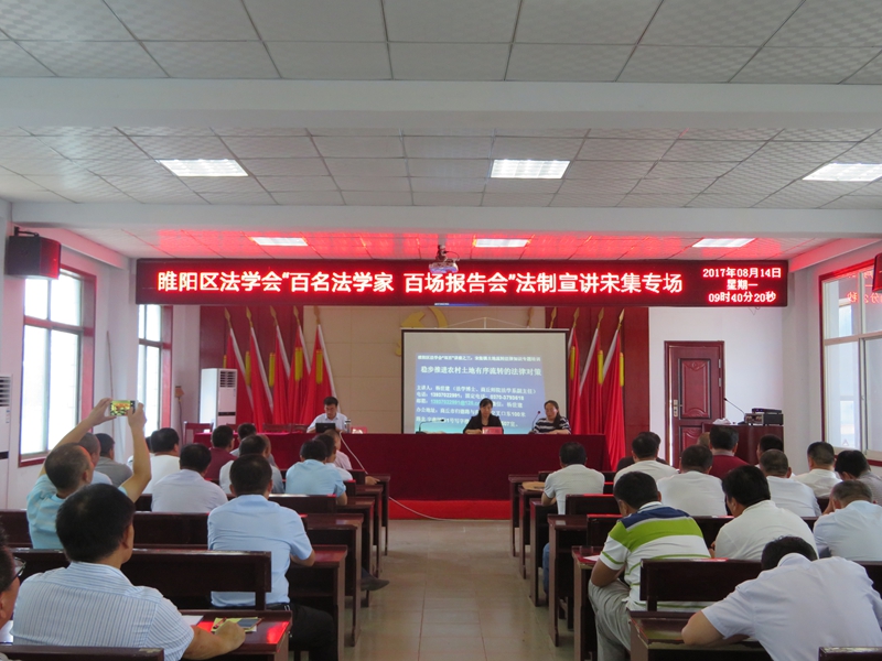 8月14日,商丘睢陽區(qū)法學(xué)會在睢陽區(qū)宋集鎮(zhèn)舉辦了“百名法學(xué)會 百場報(bào)告會”法治宣講報(bào)告,法學(xué)專家從從當(dāng)前農(nóng)村土地流轉(zhuǎn)中存在的主要問題及成因展開授課,結(jié)合典型案例,從社會治理層面推進(jìn)土地流轉(zhuǎn),最大限度化解風(fēng)險的角度為基層干部做詳實(shí)闡述,對如何穩(wěn)步推進(jìn)農(nóng)村土地有序流轉(zhuǎn)提出了法律對策,確保土地工作有法可依。