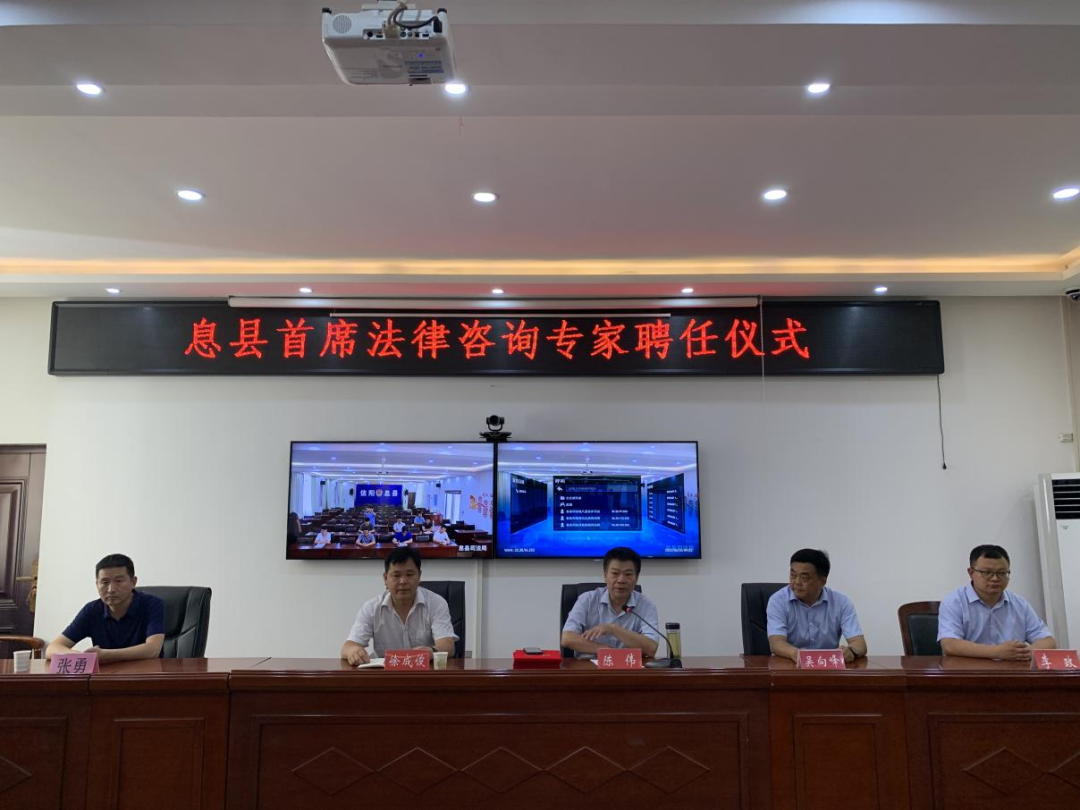 近日,息縣舉行首席法律咨詢專家聘任儀式??h委政法委常務(wù)副書記,縣法學(xué)會(huì)黨組書記、常務(wù)副會(huì)長(zhǎng)陳偉主持儀式,并為受聘的5名法律咨詢專家頒發(fā)聘任證書。