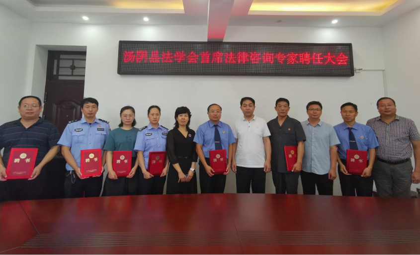 7月27日下午,湯陰縣舉行首席法律咨詢專家聘任大會,劉保巖等8名被聘任人員和縣法檢公司分管負(fù)責(zé)同志參加儀式,縣委政法委常務(wù)副書記、縣法學(xué)會常務(wù)副會長李獻(xiàn)月出席并講話,縣委政法委副書記、縣法學(xué)會副會長胡明霞主持會議。