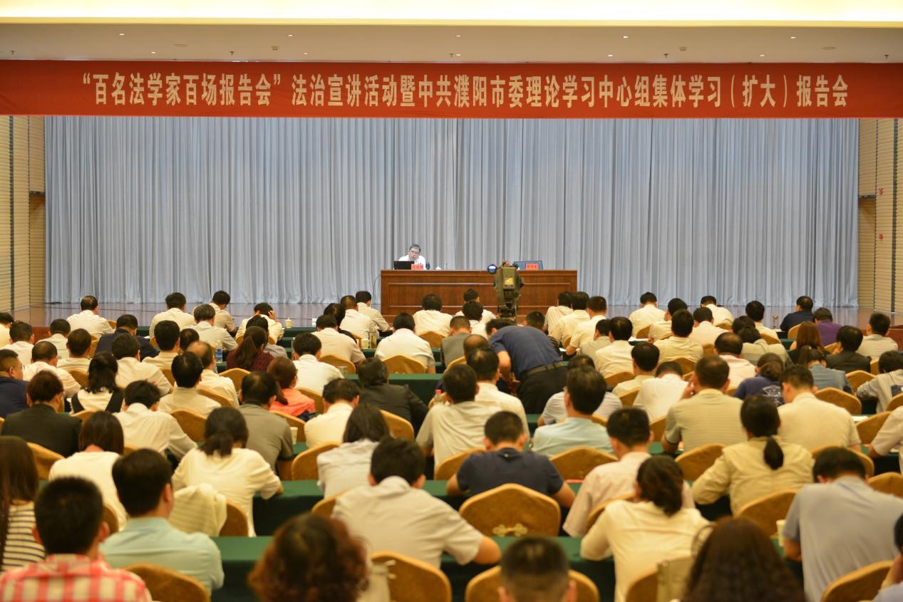 9月26日下午,濮陽市委中心組集體學習”雙百“法治宣講(擴大)報告會在濮陽迎賓館召開,邀請鄭大法學院王建國教授作專題輔導報告。