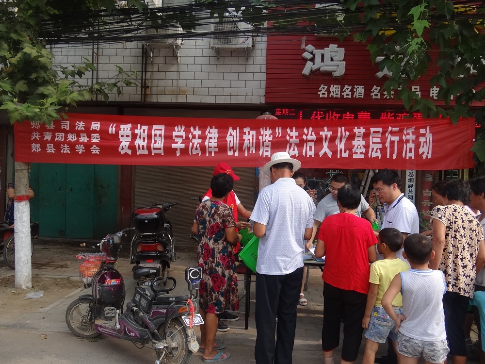 為加快我縣法治建設進程,推動法律“進機關、進鄉(xiāng)鎮(zhèn)、進社區(qū)、進校園、進企業(yè)、進單位”活動深入開展,在全社會進一步形成尊法、學法、守法、用法的良好氛圍,8月22日,郟縣司法局、共青團郟縣委、郟縣法學會在堂街鎮(zhèn)開展“愛祖國 學法律 創(chuàng)和諧”法治文化基層行宣傳活動。