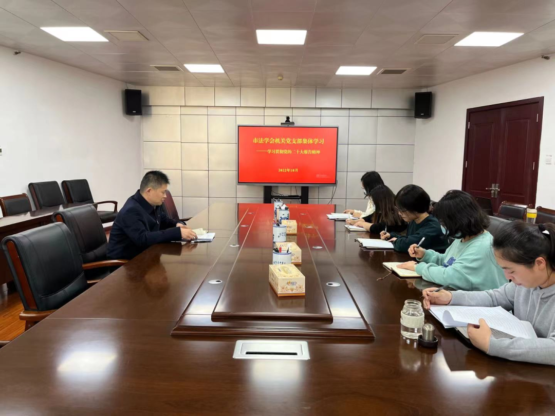 10月18日下午,鶴壁市法學會機關(guān)黨支部組織全體黨員集體學習貫徹黨的二十大報告精神,市法學會全體黨員參加,會議由市法學會機關(guān)支部書記周忠波主持。