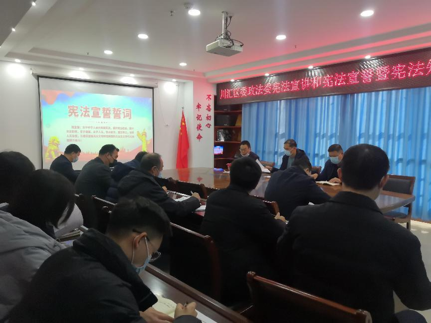 會上,區(qū)委政法委機關(guān)全體人員和區(qū)法學(xué)會會長、副會長、秘書長、副秘書長等法學(xué)會代表舉行了憲法知識測試。測試結(jié)束后,區(qū)法學(xué)會會長、區(qū)委常委、政法委書記巴兵帶領(lǐng)全體人員向憲法宣誓,讓每一名政法干部深切感受到自己身上的責(zé)任和使命。