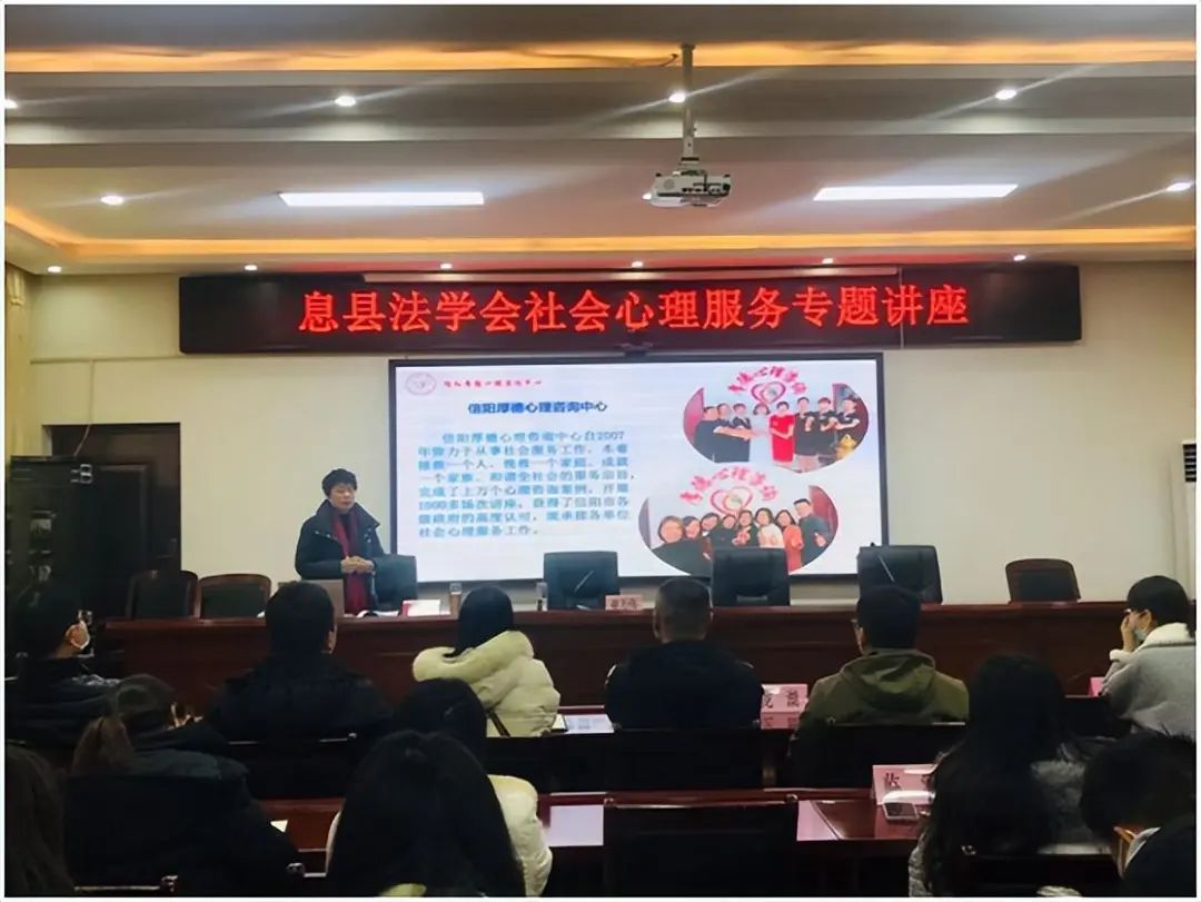 2月8日,息縣政法委、縣法學(xué)會(huì)舉辦了全縣社會(huì)心理服務(wù)專題講座,邀請(qǐng)信陽(yáng)市厚德心理咨詢中心主任、國(guó)家二級(jí)心理咨詢師葉霞授課。