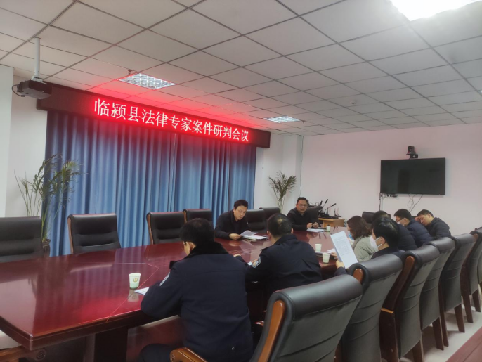 近日,臨潁縣法學(xué)會組織召開法律專家案件研判會議。縣委政法委副書記、縣法學(xué)會副會長胡國濤及縣法院、檢察院、公安局相關(guān)負(fù)責(zé)同志參加會議,3名首席法律咨詢專家列席會議。