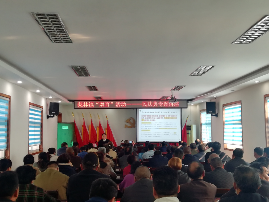 近日,梨林鎮(zhèn)開展“雙百”法治宣傳暨民法典專題講座,鎮(zhèn)領(lǐng)導(dǎo)、機關(guān)各部門負責(zé)人、村兩委成員及“法律明白人”共100余人參加宣講活動。