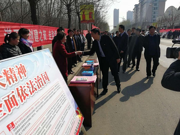 2018年3月13日上午,葉縣法學(xué)會(huì)組織十八個(gè)鄉(xiāng)(鎮(zhèn)、街道)的法律服務(wù)站和相關(guān)縣直單位在縣委北門(mén)道路兩旁開(kāi)展法治宣傳活動(dòng),教育引導(dǎo)轄區(qū)內(nèi)群眾切實(shí)增強(qiáng)法律意識(shí),大力弘揚(yáng)法治精神。