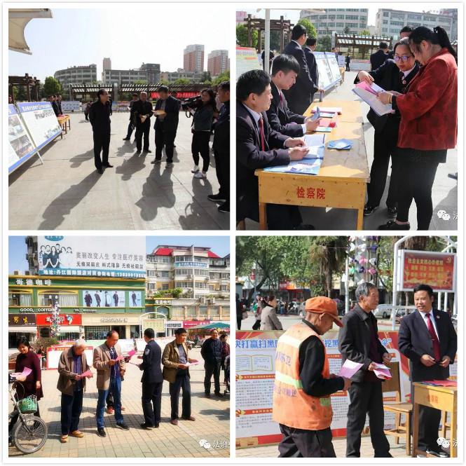 為廣泛深入宣傳綜治平安建設,擴大影響,在全社會營造嚴厲打擊涉黑涉惡違法犯罪活動、共建平安淅川的輿論氛圍,縣法學會會同掃黑辦制定并印發(fā)了《關于開展2018年度掃黑除惡系列宣傳活動的通知》對此次活動作了具體安排布署。20多個綜治成員單位,精心組織,聯(lián)合發(fā)力,集中宣傳,聲勢浩大。