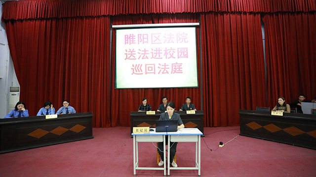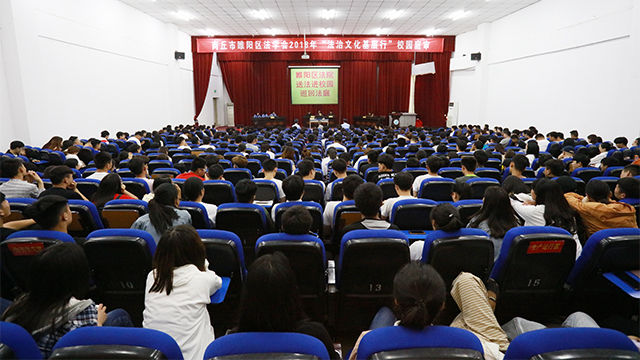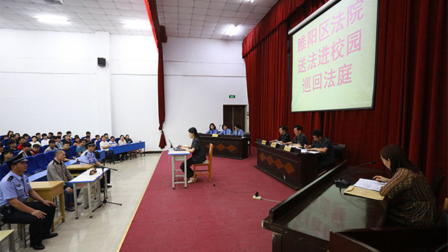 為加大對在校青少年學(xué)生的法治宣傳教育力度,大力營造“七五”普法“法律八進”活動的濃厚氛圍,進一步推動“送法進校園”系列活動深入開展,商丘市睢陽區(qū)法學(xué)會與睢陽區(qū)法院經(jīng)過縝密協(xié)商,精心準(zhǔn)備,選取一起真實案例,于5月23日下午,在商丘職業(yè)技術(shù)學(xué)院開展了“校園庭審”活動,學(xué)校師生共400多人參加了此次庭審活動。