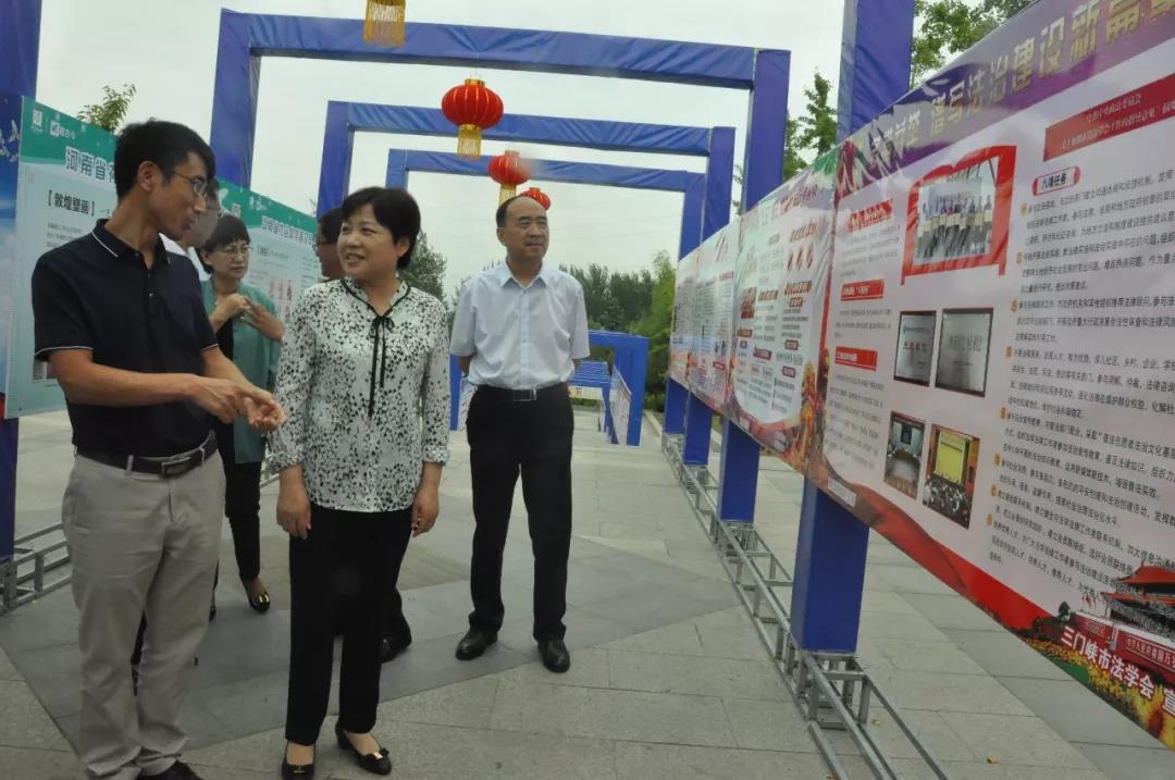 市委常委、宣傳部長(zhǎng)、市政府黨組成員牛蘭英等市領(lǐng)導(dǎo)觀看展板