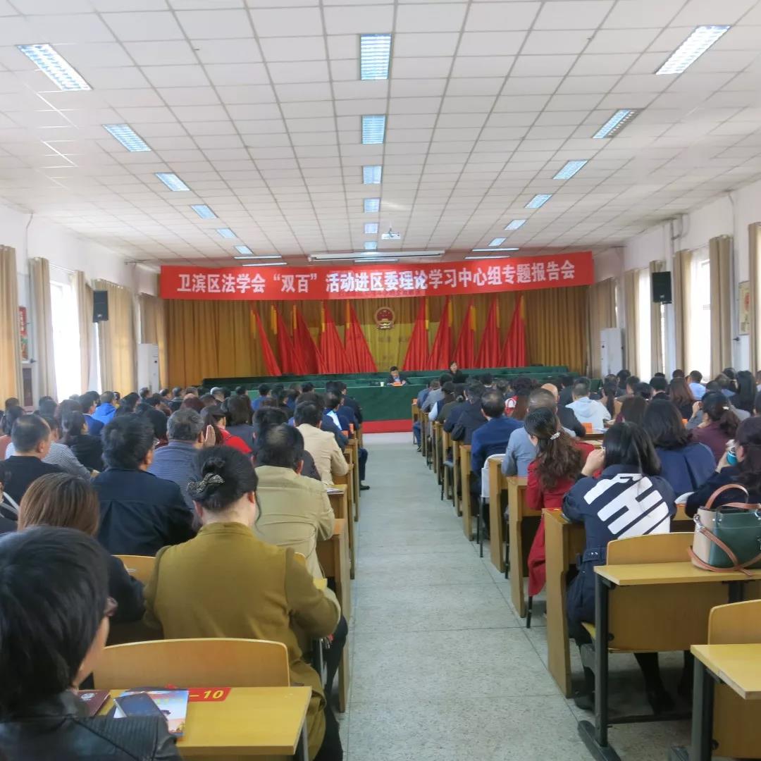 為加強基層法治工作建設(shè),營造平安和諧社會環(huán)境,提高基層干部法律知識素養(yǎng),10月23日下午,新鄉(xiāng)市衛(wèi)濱區(qū)法學(xué)會舉辦“雙百”活動進(jìn)區(qū)委理論學(xué)習(xí)中心組專題報告會。區(qū)四大班子領(lǐng)導(dǎo),平原鎮(zhèn)、各辦事處、區(qū)直各部門副科級實職以上領(lǐng)導(dǎo)干部,公安、檢察院、法院全體班子成員參加了此次專題報告會。會議由區(qū)委副書記顧崇豪主持。