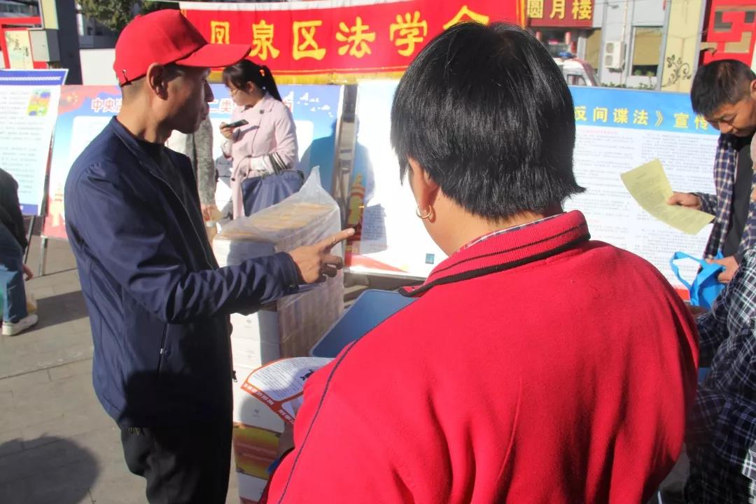 為進一步增強公民的國家安全意識,提高廣大群眾對《反間諜法》的認識,筑牢國家安全人民防線,10月26日上午,在《中華人民共和國反間諜法》頒布實施四周年之際,新鄉(xiāng)市鳳泉區(qū)法學會聯(lián)合轄區(qū)相關單位在宏銘時代廣場開展了《中華人民共和國反間諜法》集中宣傳教育活動。
