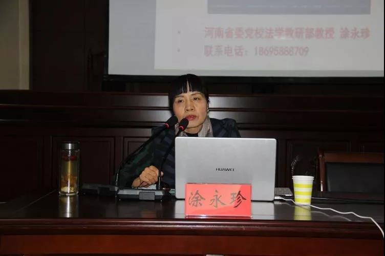 2018年11月6日,按照省委、市委政法委和省、市法學會的要求,召陵區(qū)法學會決定舉辦河南省“百名法學家百場報告會暨憲法專題宣講會”召陵專場,特邀請了省委黨校涂永珍教授到召陵授課。