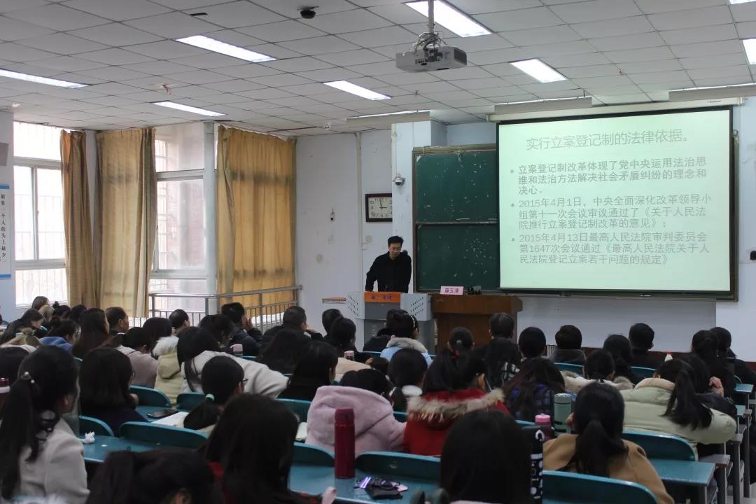 2018年12月4日,是第五個國家憲法日,新鄉(xiāng)市法學(xué)會民事訴訟法學(xué)會為響應(yīng)新鄉(xiāng)市法學(xué)會12.4法治宣傳周活動,與新鄉(xiāng)學(xué)院歷史與社會發(fā)展學(xué)院共同邀請河南省高級人民法院立案庭綜合組組長、河南省法官學(xué)院兼職教授、《公民與法》雜志特約編輯薛玉清法官,走進新鄉(xiāng)學(xué)院,為在校大學(xué)生深入開展法制宣傳教育。