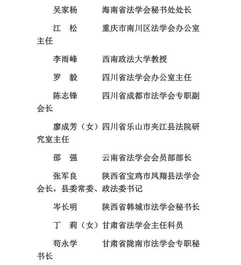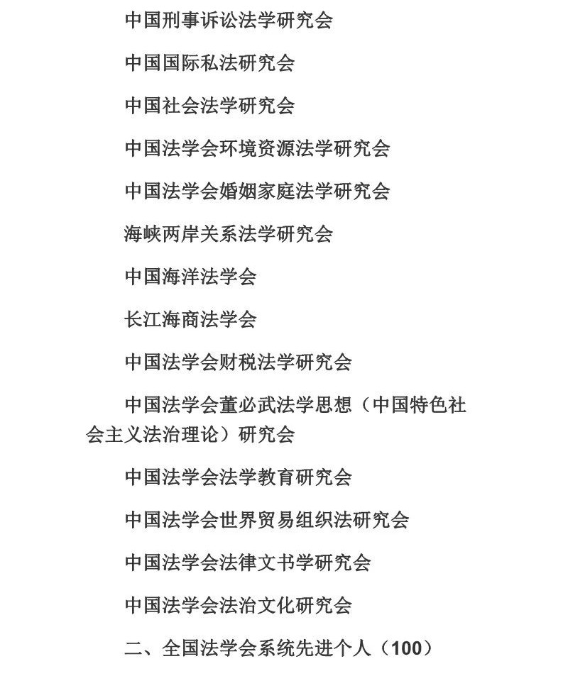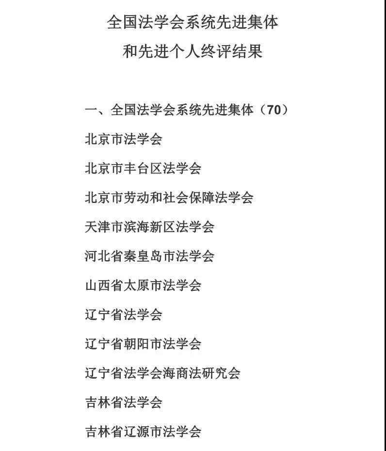 根據(jù)《關(guān)于在全國法學(xué)會系統(tǒng)開展先進(jìn)集體和先進(jìn)個(gè)人評選表彰活動的通知》(會字〔2018〕44號),經(jīng)中國法學(xué)會會長辦公會會議、中國法學(xué)會黨組會議研究通過,現(xiàn)將全國法學(xué)會系統(tǒng)先進(jìn)集體、先進(jìn)個(gè)人終評結(jié)果予以公示(見附件)。