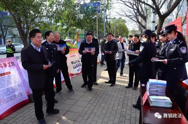 上午9時(shí),舞鋼市委常委、政法委書記、法學(xué)會(huì)會(huì)長任國軍、市人大副主任劉吉功、市檢察院檢察長韓躍武、市領(lǐng)導(dǎo)劉林山、市公安局政委高慶祥到活動(dòng)現(xiàn)場參加、指導(dǎo)集中宣傳活動(dòng),舞鋼市電視臺(tái)、信息中心對集中宣傳活動(dòng)進(jìn)行了報(bào)道。