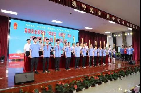 6月5日,第四屆全國學(xué)生“學(xué)憲法講憲法”活動河南省啟動儀式在新鄉(xiāng)市育才小學(xué)明德校區(qū)正式啟動。教育部政策法規(guī)司巡視員王家勤、河南省司法廳副廳長魯建學(xué)、省檢察院副巡視員劉秋香、團(tuán)省委副書記王篤波、省教育廳副巡視員王學(xué)進(jìn)、省法學(xué)會副會長謝德安、新鄉(xiāng)市副市長王占波等出席本次活動。新鄉(xiāng)市中小學(xué)學(xué)生代表800余人在現(xiàn)場參加活動。