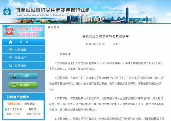 8月17日,河南省省直機(jī)關(guān)住房資金管理中心公布《省直住房公積金商轉(zhuǎn)公貸款須知》,其中披露,夫妻雙方均在省直中心正常連續(xù)繳存6個月以上,在鄭州市區(qū)內(nèi)購買首套住房,貸款金額不超過80萬元;借款人單方繳存住房公積金、購買二套或郊縣房產(chǎn)的,貸款金額不超過60萬元。詳細(xì)內(nèi)容如下: