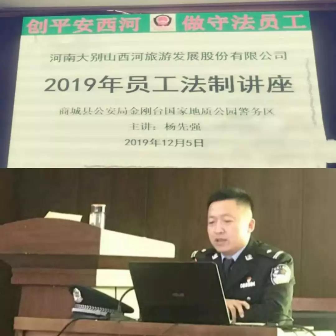 在今年“憲法宣傳周”期間,商城縣公安局金剛臺(tái)國(guó)家地質(zhì)公園警務(wù)區(qū)青年普法志愿者開展“法治進(jìn)企業(yè)”活動(dòng),走進(jìn)河南大別山西河旅游發(fā)展股份有限公司,為公司100余名員工進(jìn)行法制培訓(xùn),警務(wù)區(qū)警長(zhǎng)楊先強(qiáng)作了“創(chuàng)平安西河,做守法員工”的主題講座。