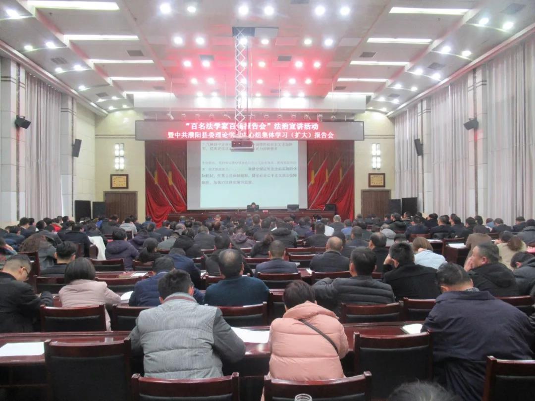 12月12日,濮陽縣委政法委組織開展“百名法學(xué)家百場報(bào)告會”法治宣講活動暨中共濮陽縣委理論學(xué)習(xí)中心組集體學(xué)習(xí)(擴(kuò)大)報(bào)告會,邀請省委黨校涂永珍教授做《深入學(xué)習(xí)貫徹十九屆四中全會精神、提高防范化解重大社會風(fēng)險(xiǎn)的能力和水平》專題報(bào)告,縣領(lǐng)導(dǎo)、鄉(xiāng)鎮(zhèn)黨委書記、縣直單位主要負(fù)責(zé)人等共計(jì)240余人聆聽了報(bào)告會。
